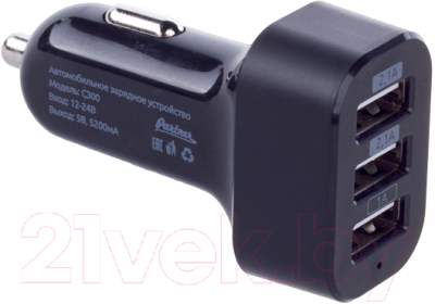 Зарядное устройство автомобильное PARTNER ПР033320 USB 5.2A/3 USB